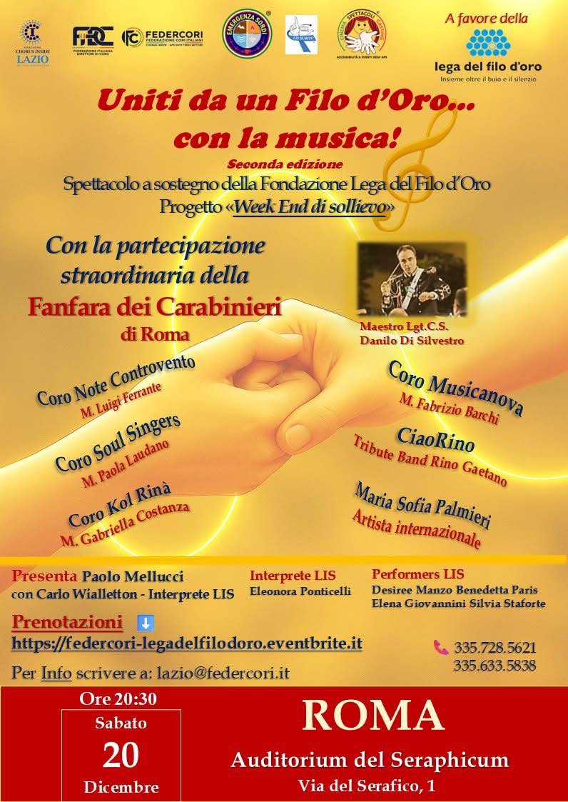 “𝐔𝐧𝐢𝐭𝐢 𝐝𝐚 𝐮𝐧 𝐅𝐢𝐥𝐨 𝐝’𝐎𝐫𝐨… 𝐜𝐨𝐧 𝐥𝐚 𝐦𝐮𝐬𝐢𝐜𝐚!” presso l'Auditorium del Seraphicum, Via del Serafico nr. 1 a Roma.